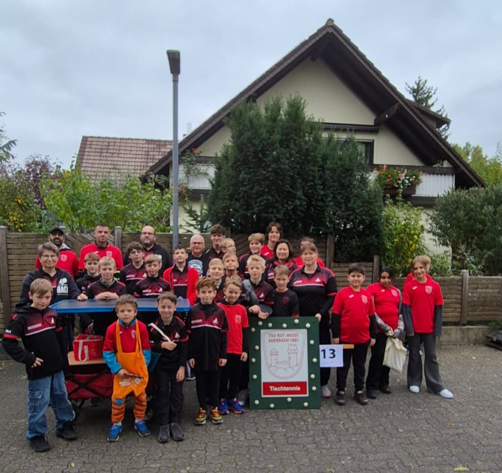 Die Kids zeigten bei jedem kurzen Halt ihr Können an der fahrbahren Mini-Tischtennisplatte, eine schöne Werbung für unseren Sport. Nach dem Umzug liessen sich alle die von der TT-Abteilung spendierte Wurst oder Pommes schmecken. Die TSV Auerbach zeigte mit mehreren Abteilungen Präsenz beim Umzug und unterstützte damit diese Traditionsveranstaltung.